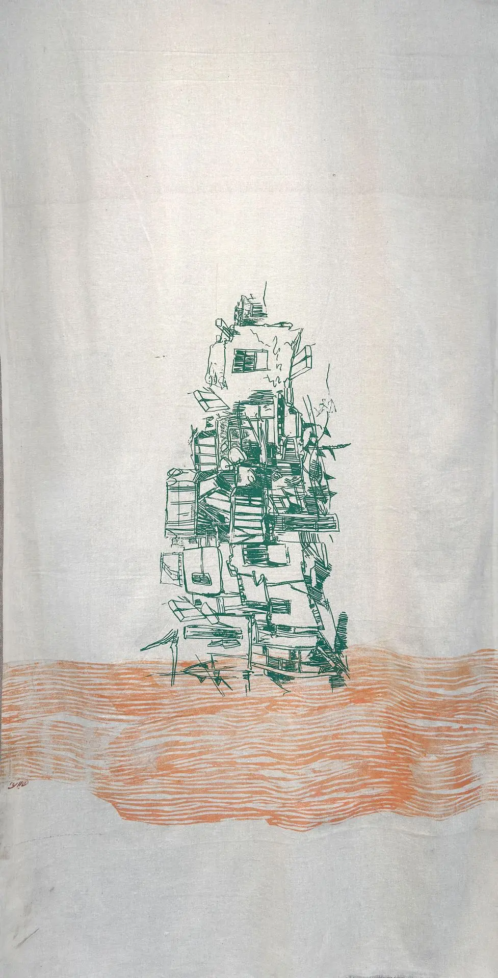 Haidy Mohamed Hassan – Silkscreen and Linocut on Fabric – 160 × 83 cm – 2025
