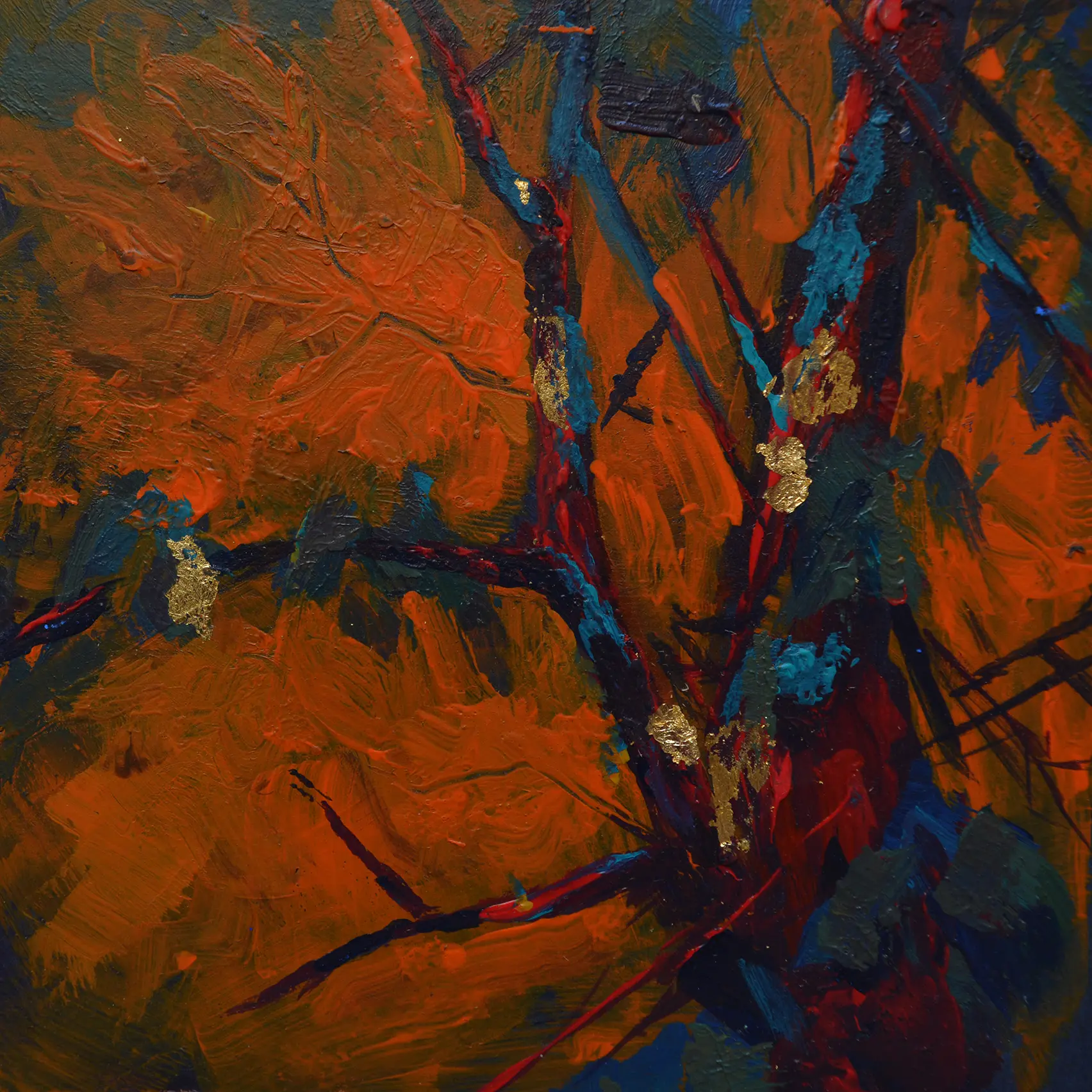 A botanical painting collection of thirty small works (15 × 15 cm), created with acrylic and gold leaf accents on MDF panels that was created in 2018. Inspired by ancient Egyptian mourning scenes, the series reimagines trees as silent mourners — embodying emotion, memory, and the quiet poetry of loss.